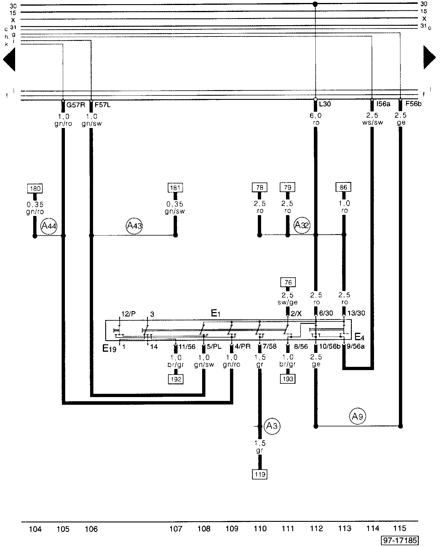 A44 - Plus connection (57r), in instrument panel wiring harness