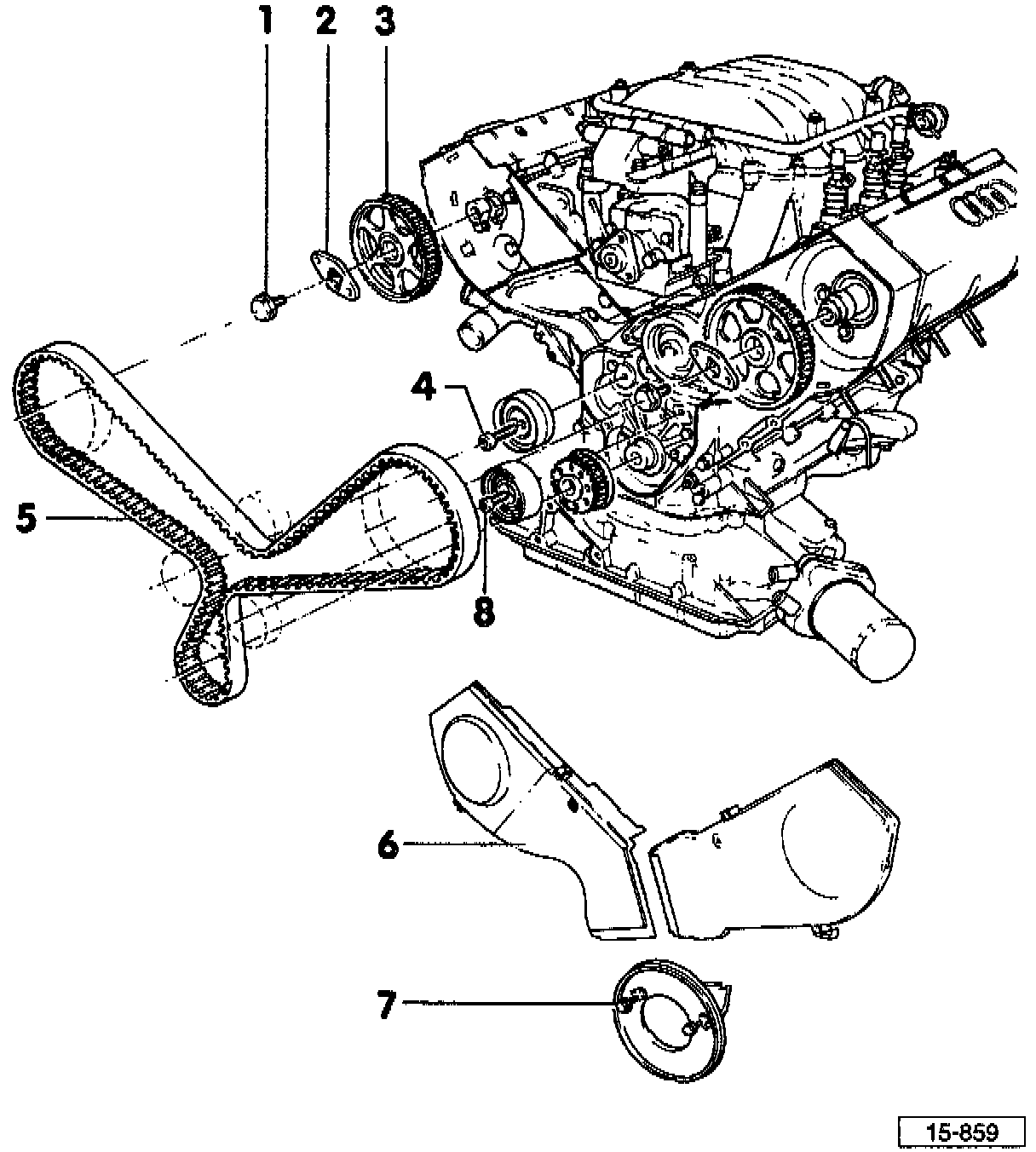 4. Toothed belt tensioner 45 Nm (33 ft lb).