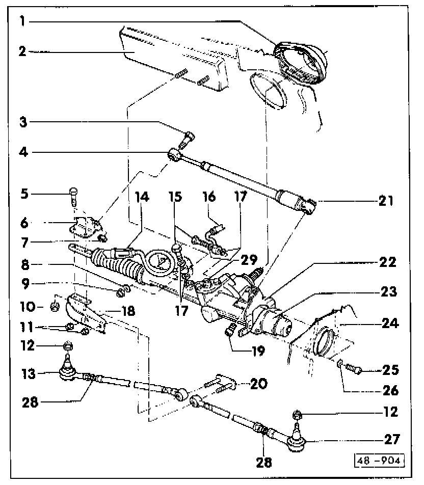 - To disconnect at rotary valve housing brake booster must be removed and steering damper disconnected on wheelhousing side and moved upward