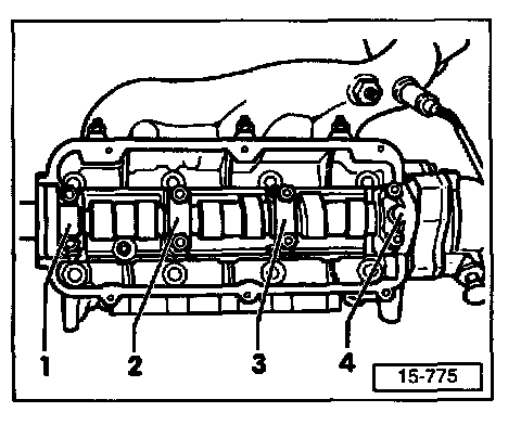 - Remove camshaft bearing caps -2- and -3-.