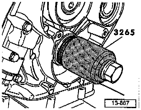 2. Press in oil seal flush with seal installer tool No. 3265, or equivalent, and center crankshaft bolt.