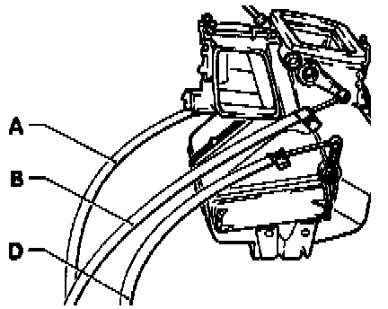 Identifying:A - From footwell/defroster flap to air distribution control knob