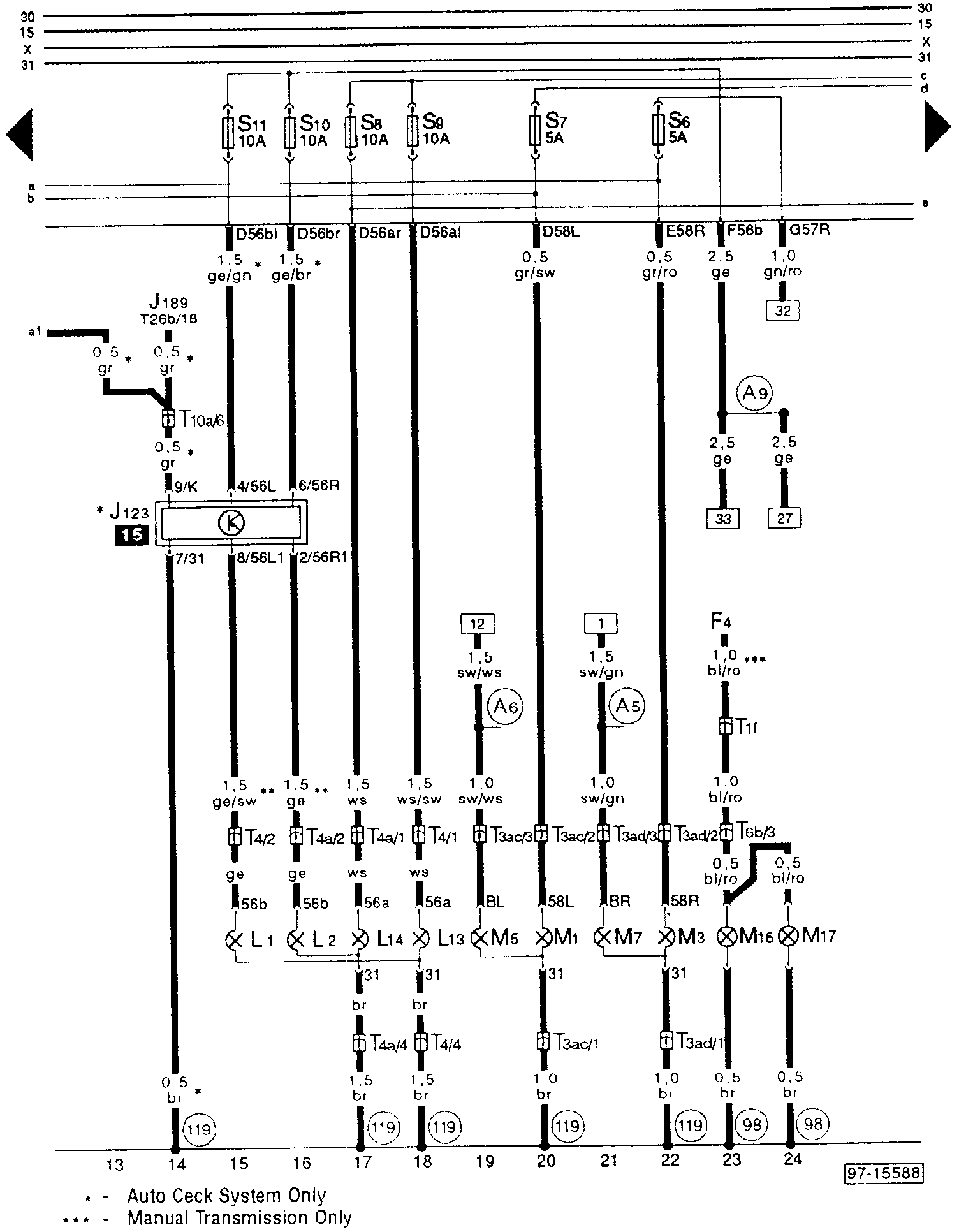 A5 - Plus connection (right turn signal), in instrument panel wiring harness