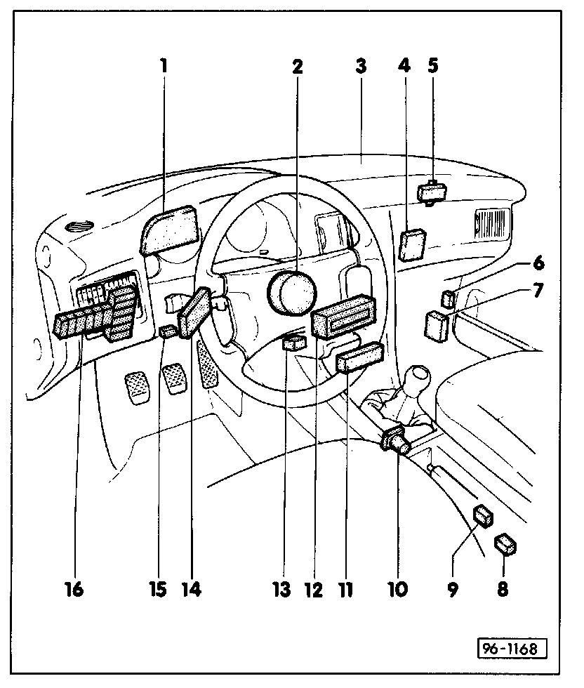 1 Computer display unit -J128-, Auto-Check system -J189-, Mini-Check system control module -J268-, Outside air temperature display -G106-