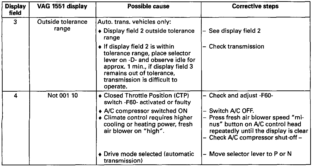 ^ Display values 2 and/or 3 can only be evaluated if the Idle Air Control (IAC) valve lies within tolerance range in closed throttle position (display value 1). If the IAC valve does not lie within tolerance range after 1 minute waiting time, no learning takes place in display fields 2 and/or 3.