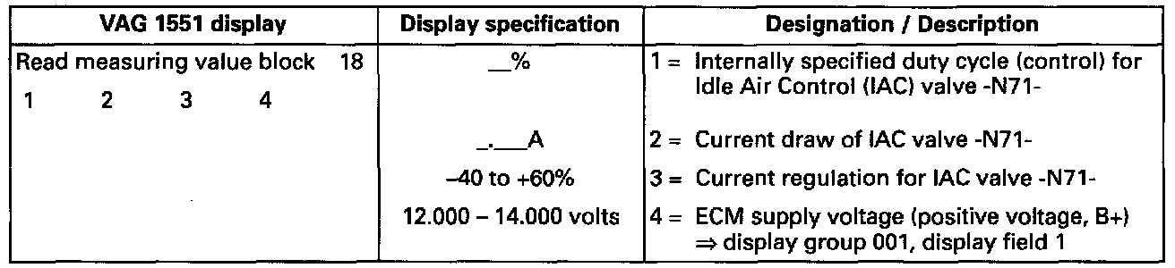 ^ The current actually drawn by the Idle Air Control (IAC) valve -N71- is displayed.