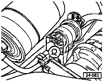 - Connect VAG 15278 voltage tester between connector terminal 1 and Ground (GND) using cable from VW 1594 test kit.