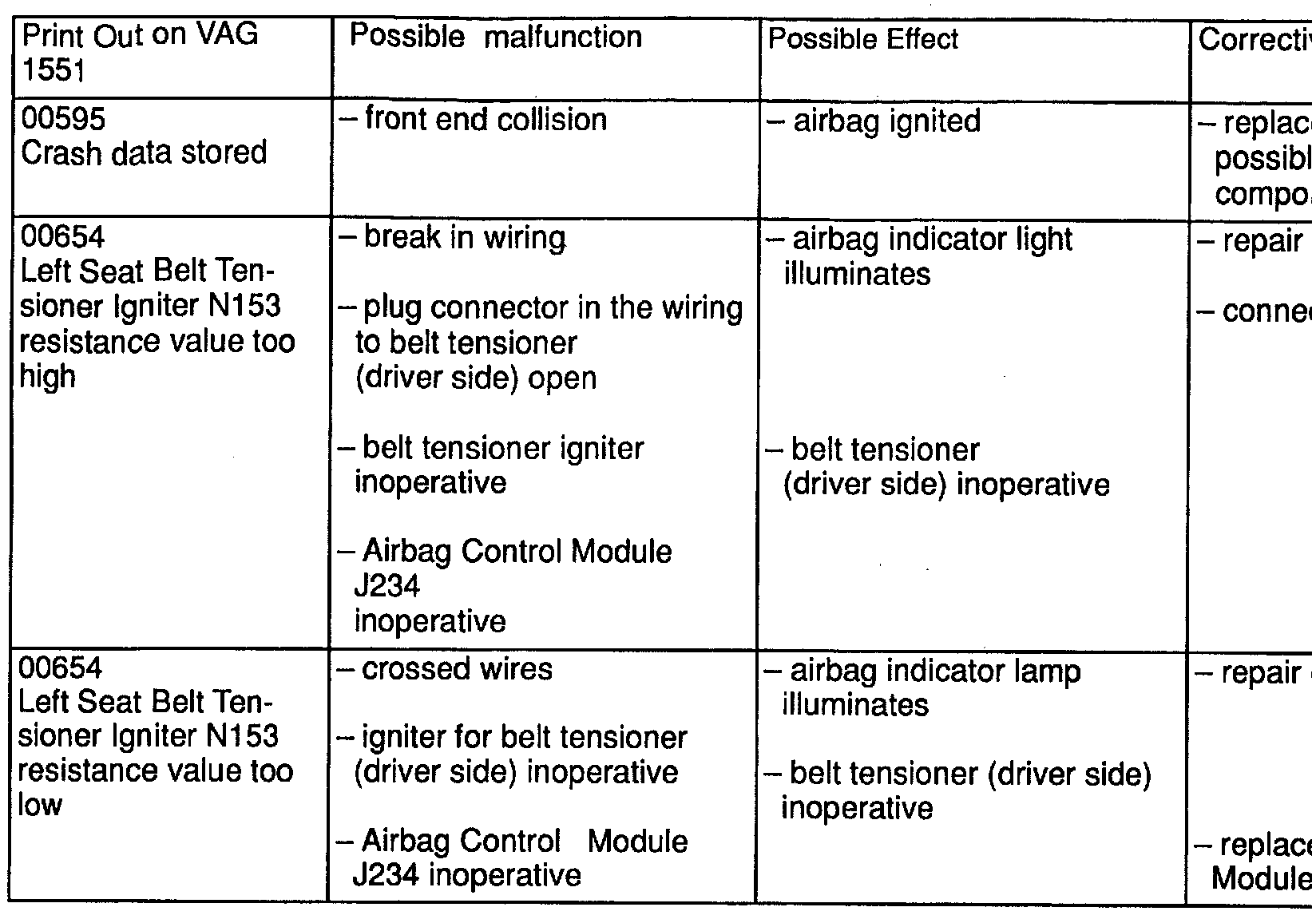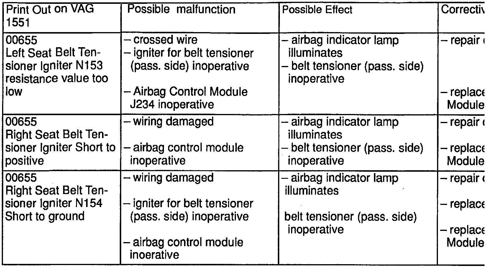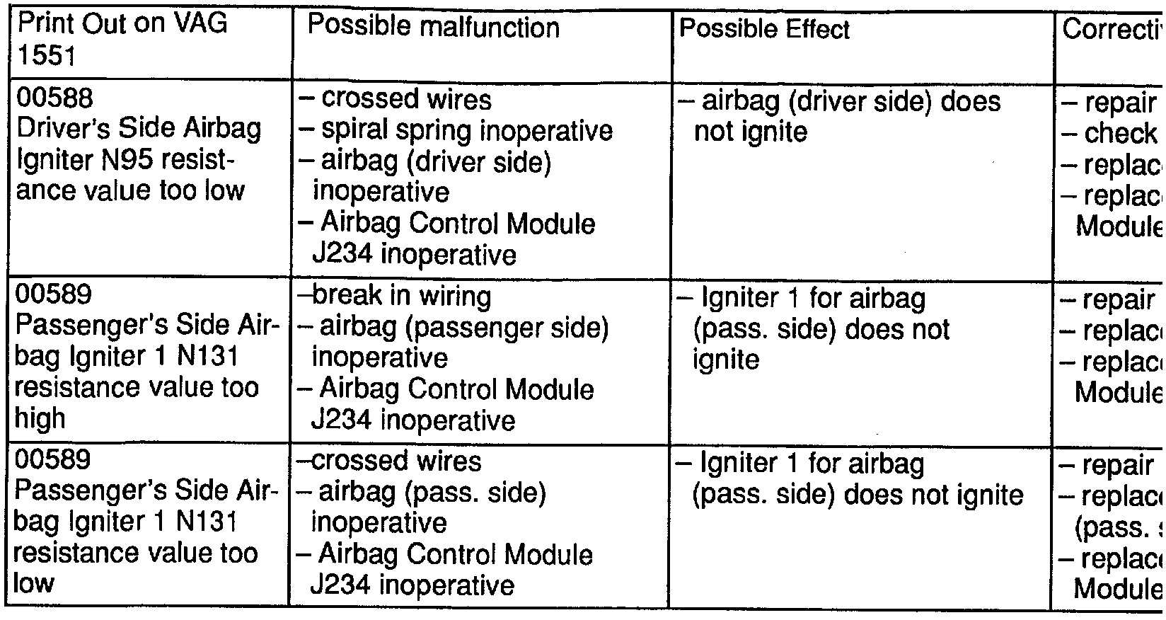 ^ The illustrations list all possible malfunctions recognized by the Airbag Control Module J234