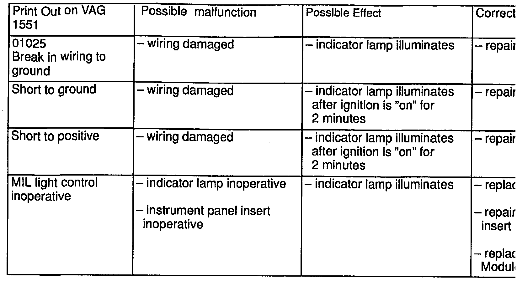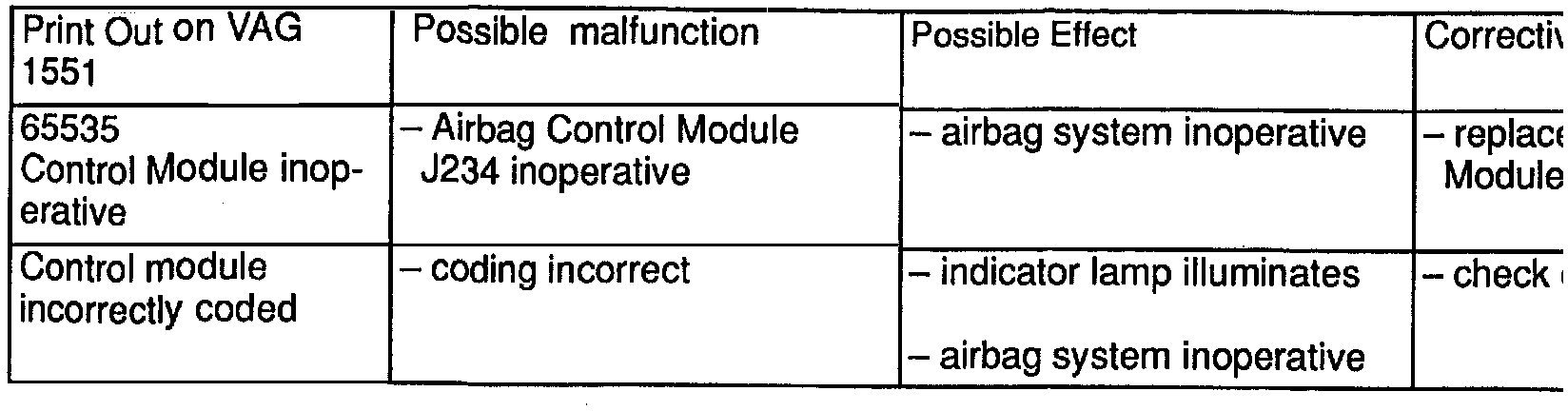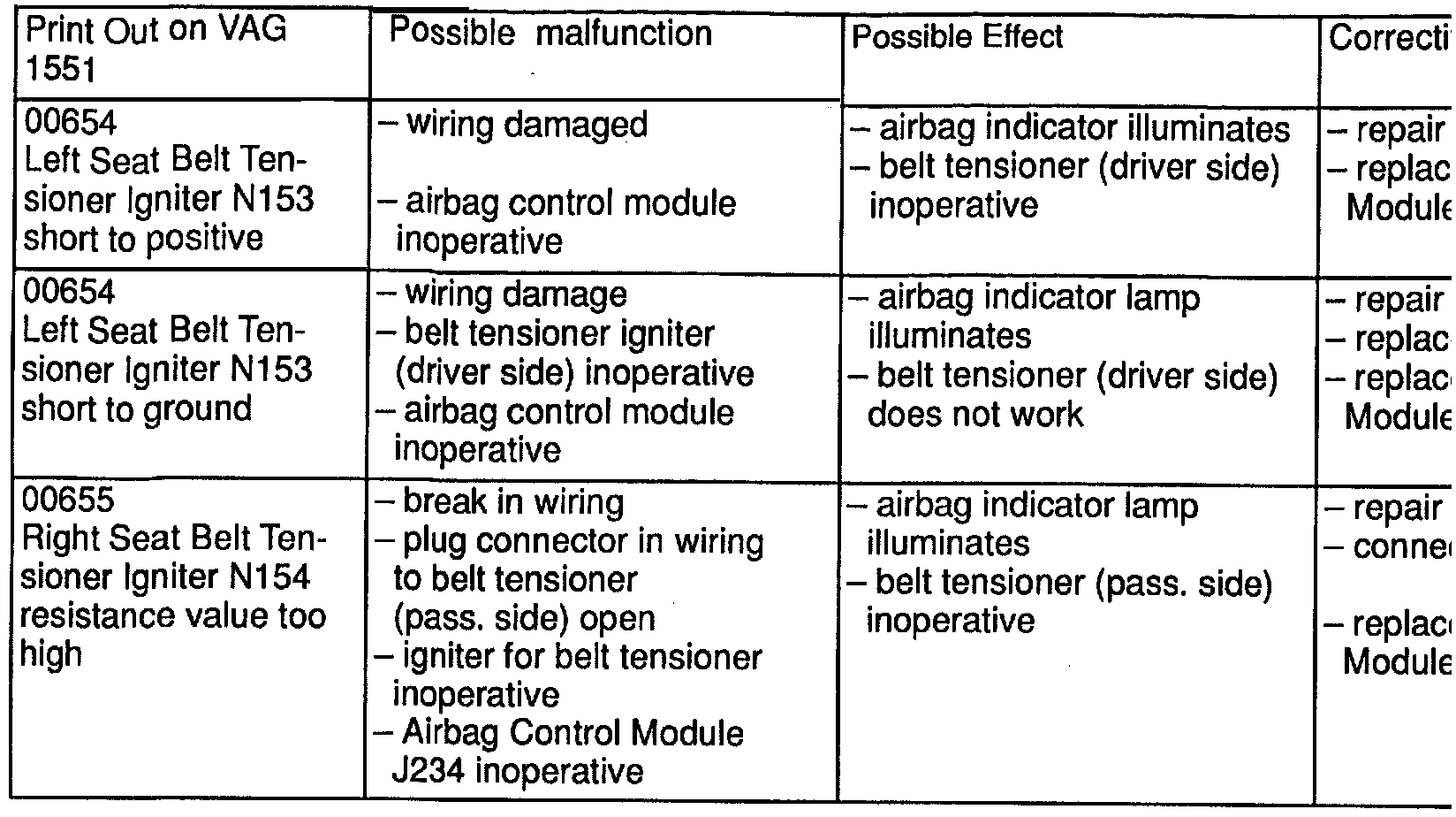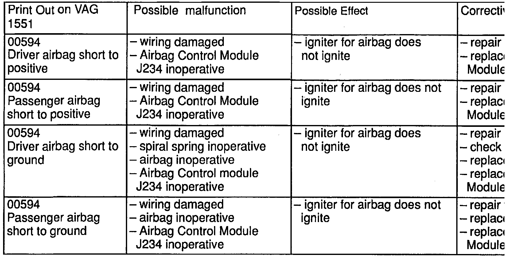 ^ The illustrations list all possible malfunctions recognized by the Airbag Control Module J234