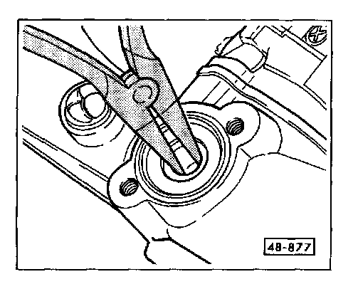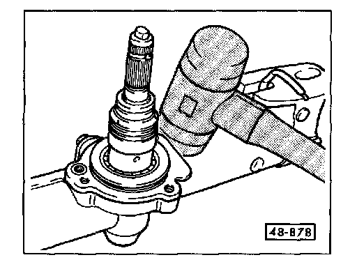 Insert steering rack seal by hand into steering gear housing and drive in fully.