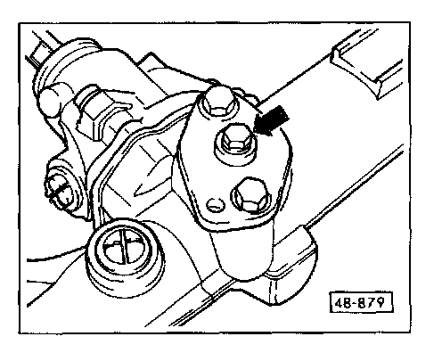 Note: Two technicians are required to make the adjustment. Adjust with the engine not running and the vehicle standing on the ground. Illustration shows the steering gear removed.