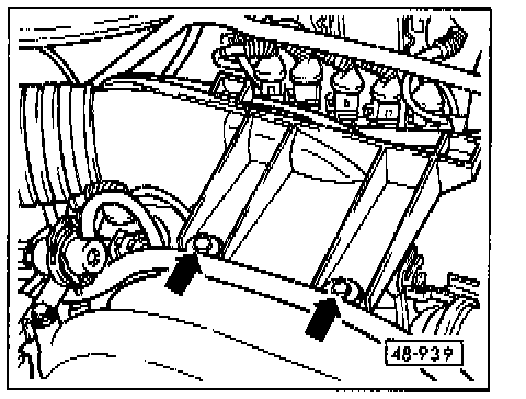 - Disconnect crankcase ventilation hose at large diameter end and disconnect from cylinder head covers.