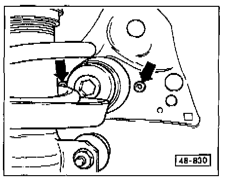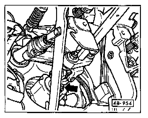 - Remove bracket for steering damper on wheelhousing side. While doing so, disconnect brake line from retaining clip.