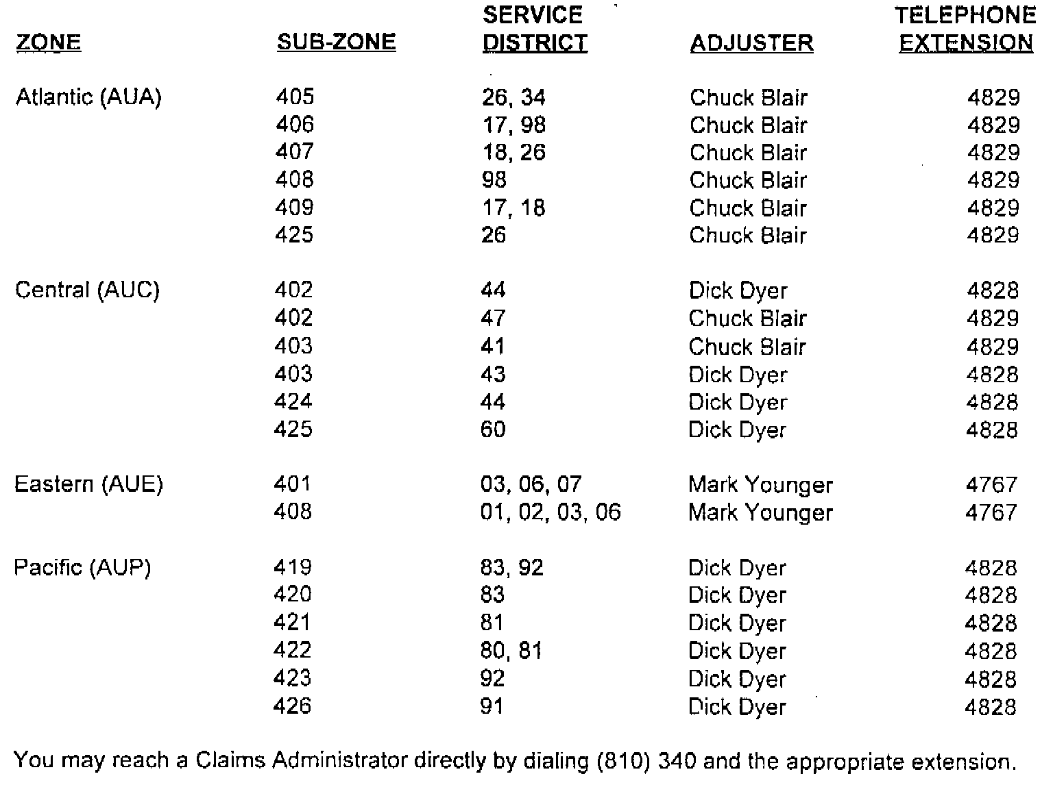 The Audi of America Warranty Claims Administrators now have the following Zone assignments: