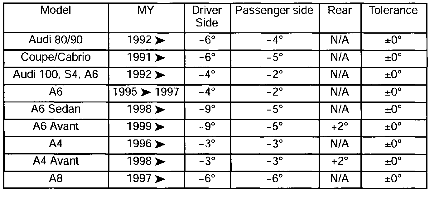 - Apply 24mm wrench -1- to adjustment tool and twist -arrows- wiper arm -2- to obtain specifications according to table below.