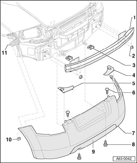 - To remove, unscrew hexagon nuts - 2 - and take off cross-member toward the rear.