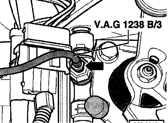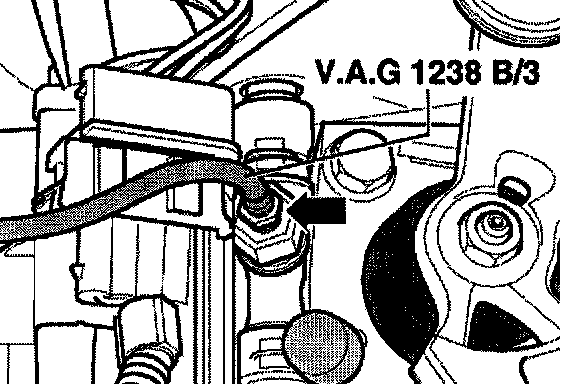 - Connect bleed hose V.A.G 1238/B3 to bleed valve - arrow -.