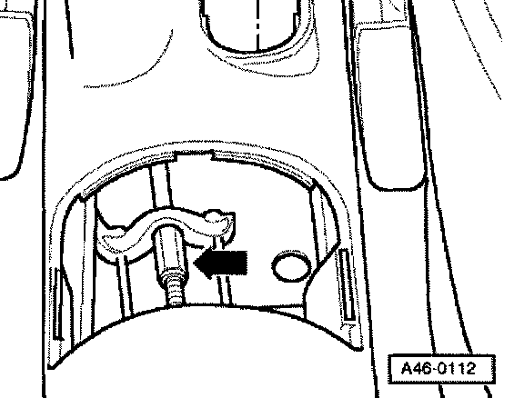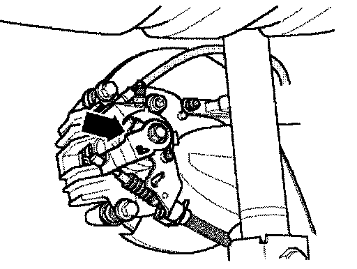 ^ With Hand brake lever in released position, tighten adjusting nut until lever - arrow - lifts off the brake caliper stop.