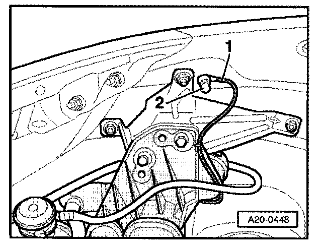 - Tighten eyelet of electrical wire -1- at chassis using cap nut -2- (10 Nm).