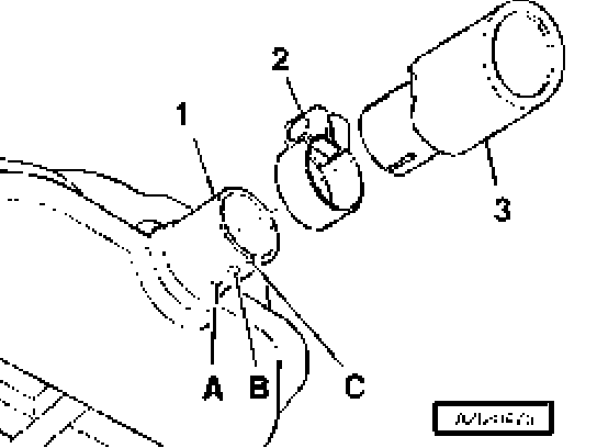 ^ Cut through tailpipe -1- squarely at cutting point -C- using body saw, e.g. VAG 1523A.