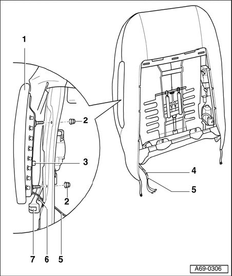 - Make sure wiring harness - 5 - runs between seat frame and plastic guide - 7 - and that cables are not subject to strain.