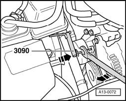- Slacken tensioning element for ribbed belt. Pull out punch or corned support 3090 (arrows).