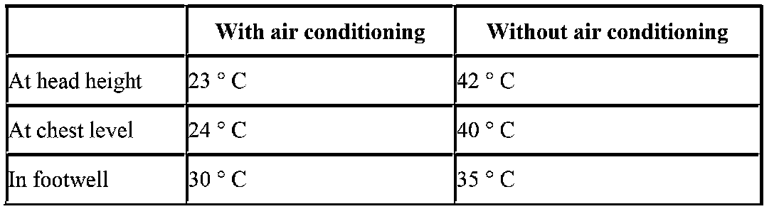 - Pleasant temperature levels (example: Mid-size car after short travelling time, ambient temperature 30 degrees C in the shade and vehicle exposed to sunlight)