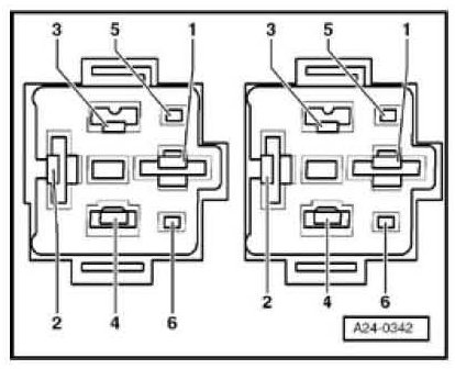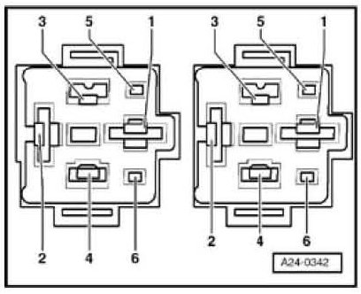 - Connect V.A.G 1527 B voltage tester between terminals 1 and 2.