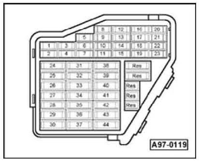 - Check wiring connection from Secondary Air Injection (AIR) pump relay -J299- (below cover, left at bulkhead) via Fuse in fuse holder -S243- (position 43) to Fuel Pump (FP) relay for open circuit