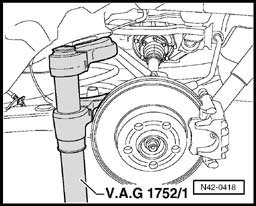 - Place engine/transmission jack V.A.G 1359/2 under the wheel bearing housing and raise it slightly.
