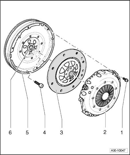 - When removing bolts, make sure that no bolt head makes contact on dual-mass flywheel because it will otherwise be damaged when further screwing the bolt.