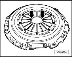 ^ Pressure plates with kinked or broken spring connections or loose rivets must be replaced.
