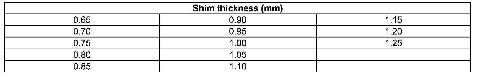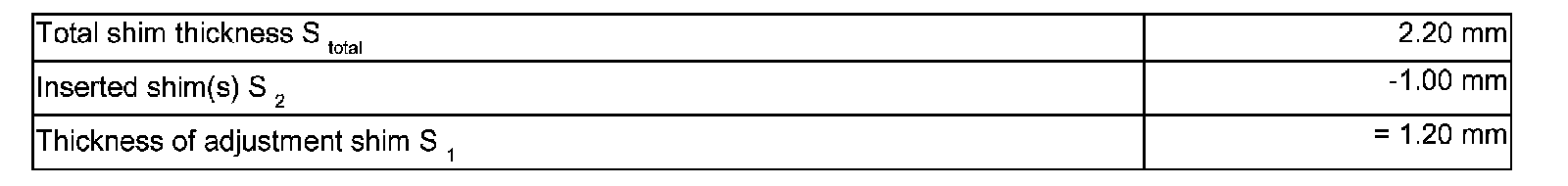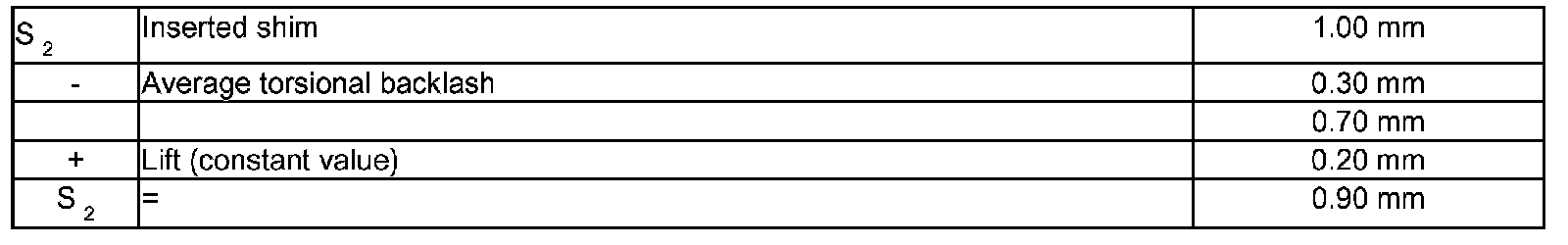 For initial measurement, an adjustment shim S 2 with a thickness of 1.00 mm is inserted. It is designated as S 2 in the following. After determining backlash, S 2 is replaced by final adjustment shim S 2.