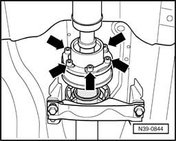 - Check whether a factory marking - arrows - is on the flexible disc and Haldex clutch flange. If not, mark parts in relation to each other.