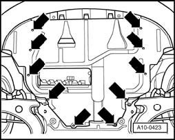 - Remove center sound insulation - arrows -.
