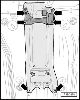 - When loosening bolt, Transmission Holder V.A.G 2004 is supported on drive shaft tube flange - arrow -.
