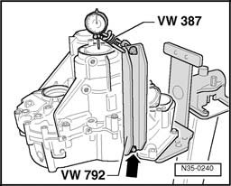 - Insert measuring tools and secure to transmission housing using a bolt - arrow -.