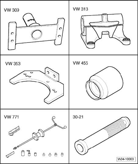 - Screw adapter VW 771/40 into threaded hole of transmission housing.