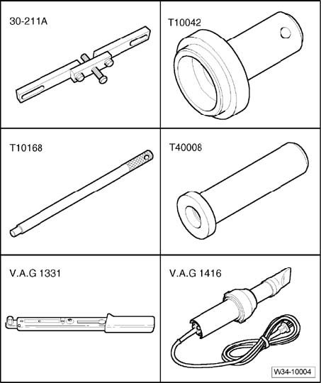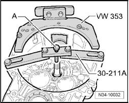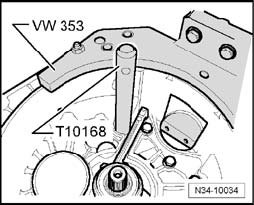 - Install conical head bolt for right flanged shaft using socket V.A.G 1669, secure against turning using a drift.