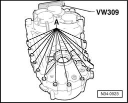 - Remove connecting bolts - A - of transmission housing/clutch housing.