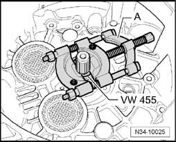 ^ Back side of separating tool must contact Thrust tube VW 455 free of play.