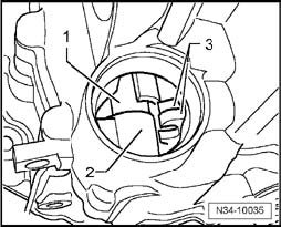 - Insert selector shaft - 1 - into lower bearing - 2 - and into shift forks - 3 -.