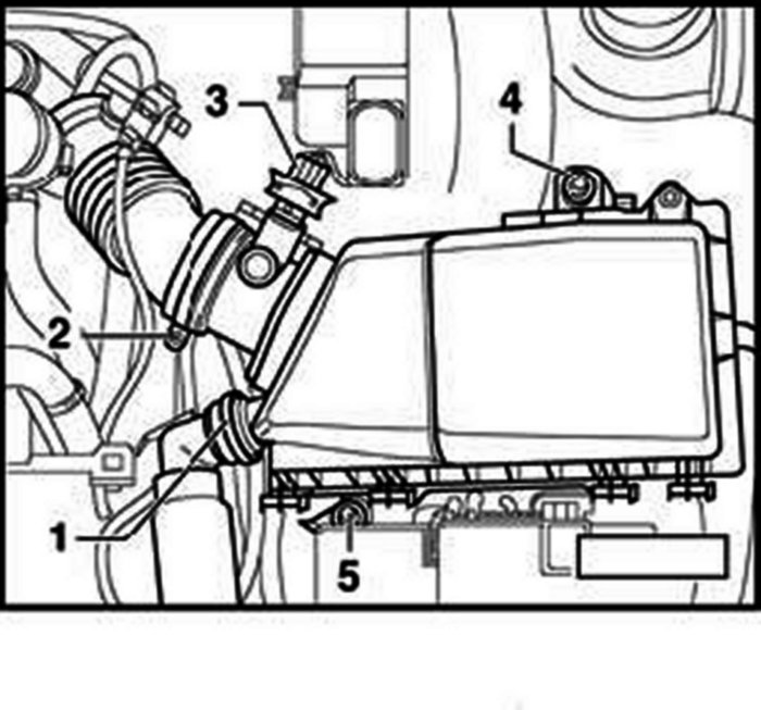 - Remove bolts -4- and -5-, and remove air cleaner housing.