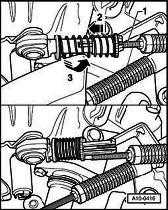 - Pull collar in direction of (arrow -2-) (toward ball joint) to compress spring, then turn collar clockwise (arrow -3-) to lock in position.