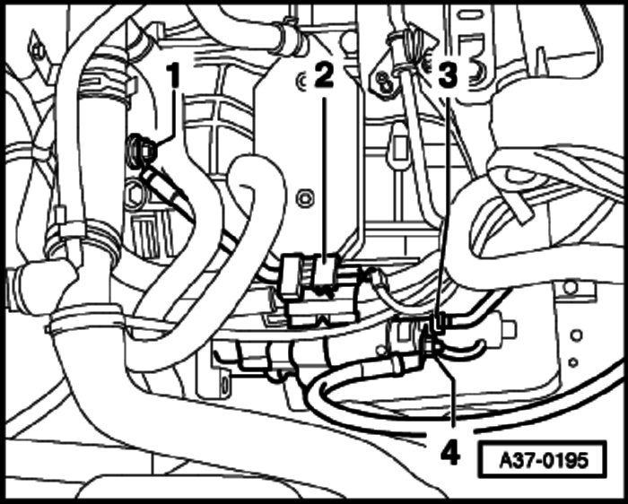 - Disconnect air hose -2- from mass air flow sensor.