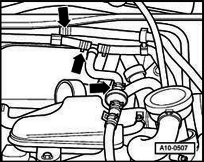 - Disconnect vacuum hose from intake manifold to T-piece in front of retainer in plenum chamber.
