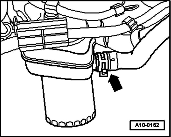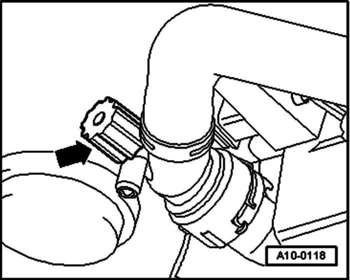 4- Detach hose from waste gate Bypass Regulator Valve -N75- at intake air duct.