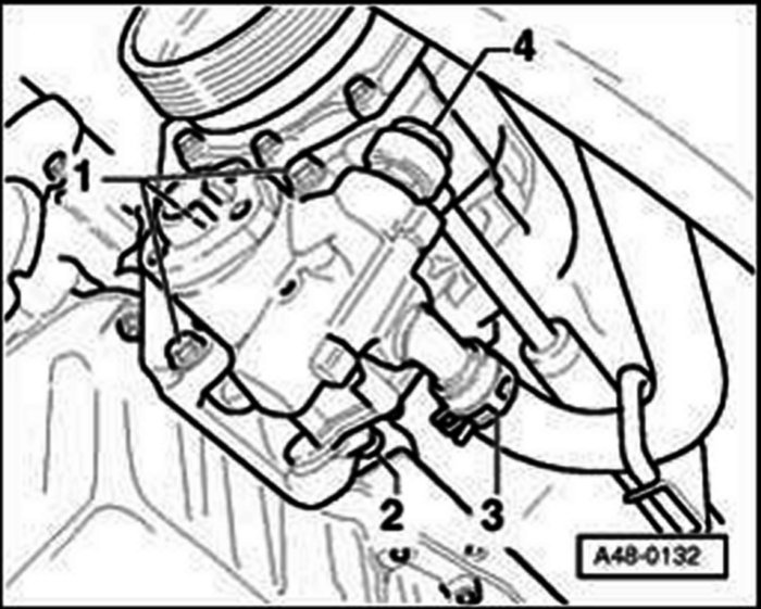 - Unbolt pump from bracket -1- and -2- (4 bolts).