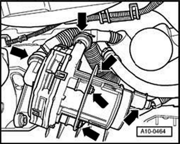 - Disconnect hoses and connectors from secondary air pump.