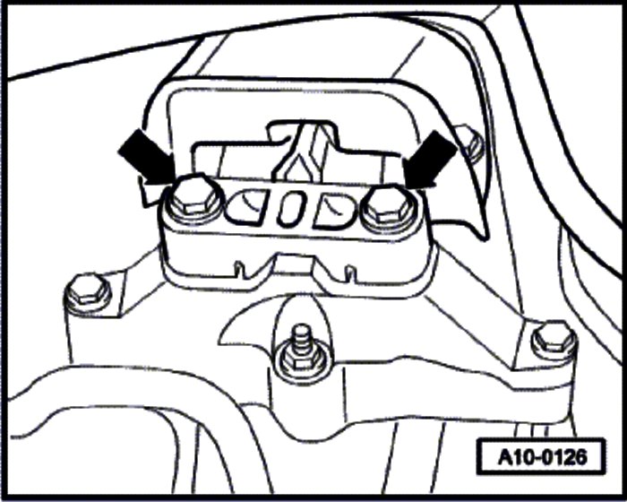 - Unbolt engine/transmission mount on the engine side. (Use step ladder VAS 5085 for access to engine compartment from above.)